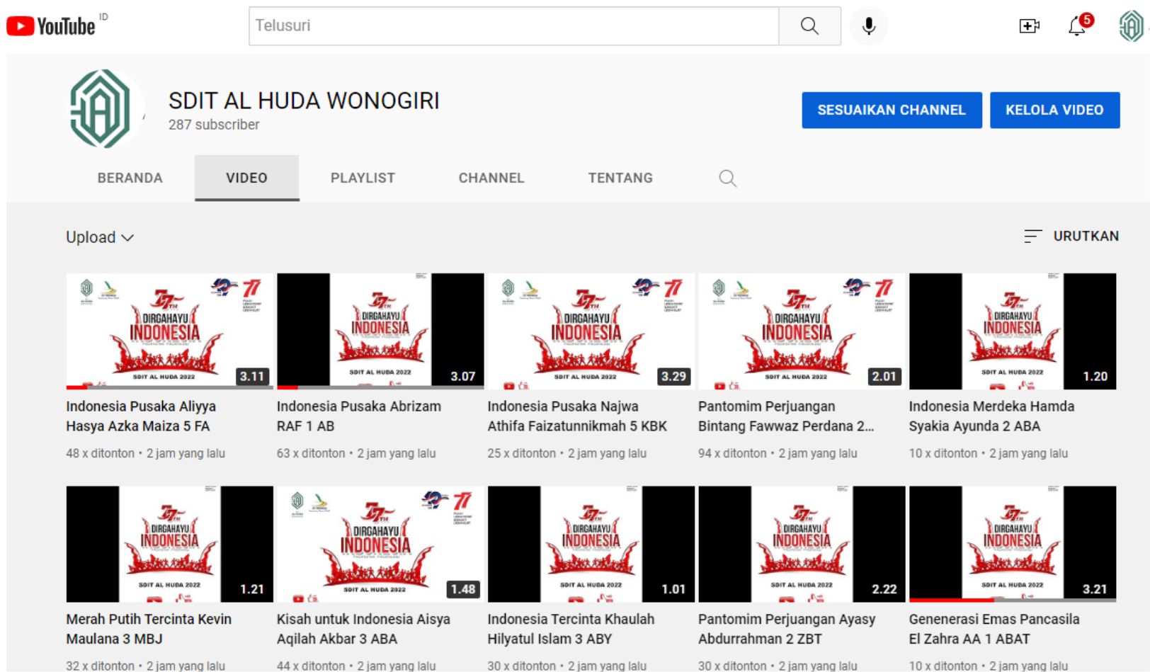 Semenjak kegiatan Semarak HUT RI ke-77 berisi lomba virtual yaitu pantomim, cerita bergambar, membaca teks proklamasi, membaca puisi, menyanyi, dan bercerita tema perjuangan diumumkan hampir dua pekan yang lalu (https://sditalhudawonogiri.sch.id/blog/2022/08/02/semarak-kemerdekaan/), setelah batas waktu pengumpulan hasil karya pada tanggal 10 Agustus, tampak peserta begitu antusias dengan banyaknya karya yang terkirim ke tautan formulir yang sudah di publikasikan oleh panitia.