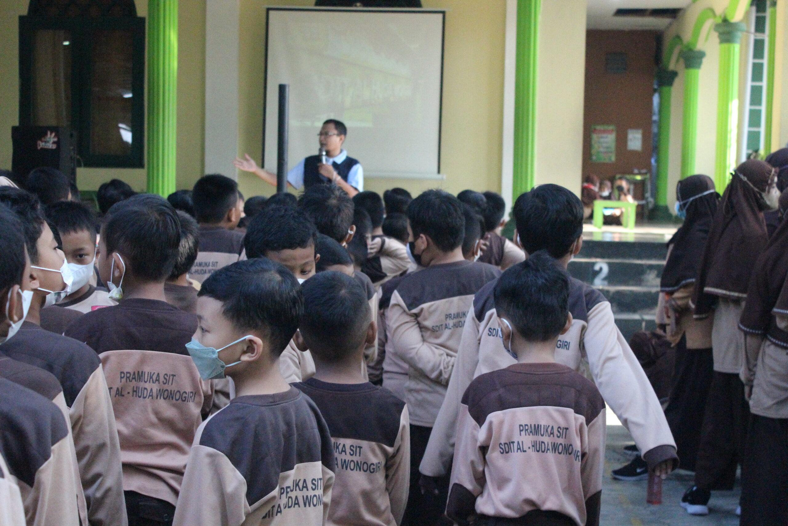 Tepat pukul 07.00 dengan tetap menerapkan protokol kesehatan, siswa serta guru karyawan berkumpul di halaman sekolah. Lalu Ustadz Fahrudin Kurniawan S.Pd.I selaku Kepala Sekolah berdiri dihadapan peserta menjelaskan urutan kegiatan pagi hari ini, yaitu dimulai dengan olahraga bersama dan dilanjutkan bersih-bersih lingkungan Sekolah. Setelah itu siswa kelas empat sampai enam bersama guru karyawan melakukan jalan sehat mengelilingi lingkungan Salak, Giripurwo sambil memungut sampah yang tercecer di pinggir jalan.