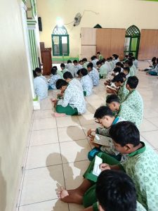 Dalam pelaksanaannya, sebagaimana terlihat pada pantauan pagi ini, para siswa duduk bersila dengan tertib membentuk shaf yang rapi. Mengenakan seragam batik hijau khas sekolah, mereka tampak khusyuk melantunkan kalimat-kalimat thoyyibah dan doa-doa perlindungan dari buku saku dzikir yang mereka pegang. Pemandangan ini mencerminkan kedisiplinan sekaligus kesungguhan siswa dalam mengikuti program pembinaan karakter yang dicanangkan sekolah. Tidak ada suara gaduh, yang terdengar hanyalah gema lantunan dzikir yang serempak memenuhi ruangan masjid.